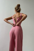 A statement set that blends power tailoring with feminine structure. The double-breasted blazer sharpens the shoulders with defined lapels, while the sculpted corset-style top streamlines the waist for a confident, hourglass line. High-waisted, pleated wide-leg trousers elongate the leg and move with elegant ease. Finished in a subtle herringbone, this three-piece switches seamlessly from boardroom to evening events.